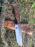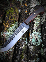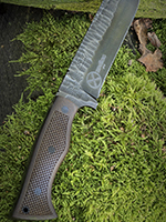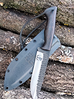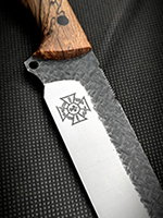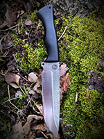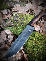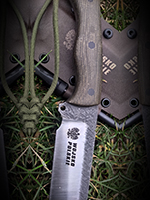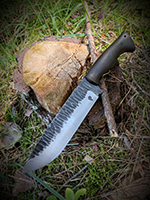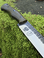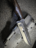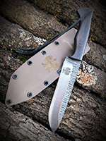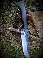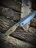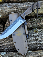 Parametry: Stal - NCV1, twardość- 60HRC, długość - 28cm, dł. ostrza - 15cm, grubość- 4mm, rękojeść - Micarta, G10, lub drewno, piny - 6mm węglowe, kabura- Kydex z mocowaniem typu TekLok na molle,